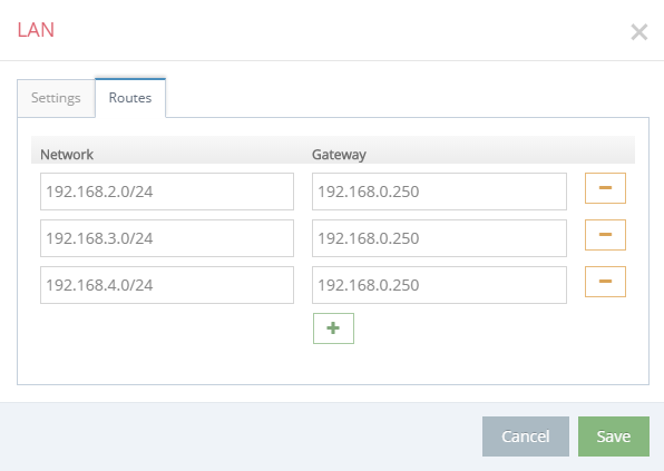 - To add new LAN routes, you have to navigate to the device View and click on the