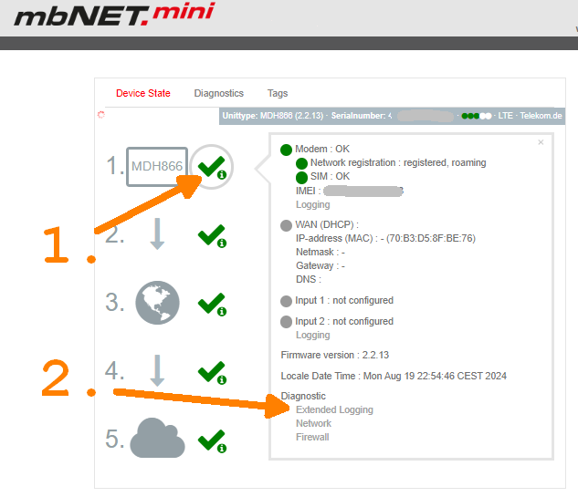 Wie erhalte ich Supportinformationen / Protokolle von einem mbNET.mini ?